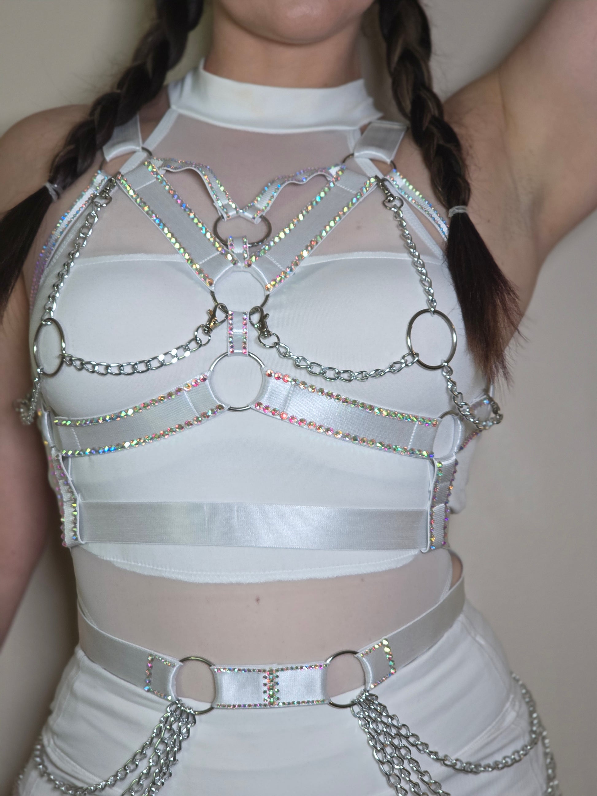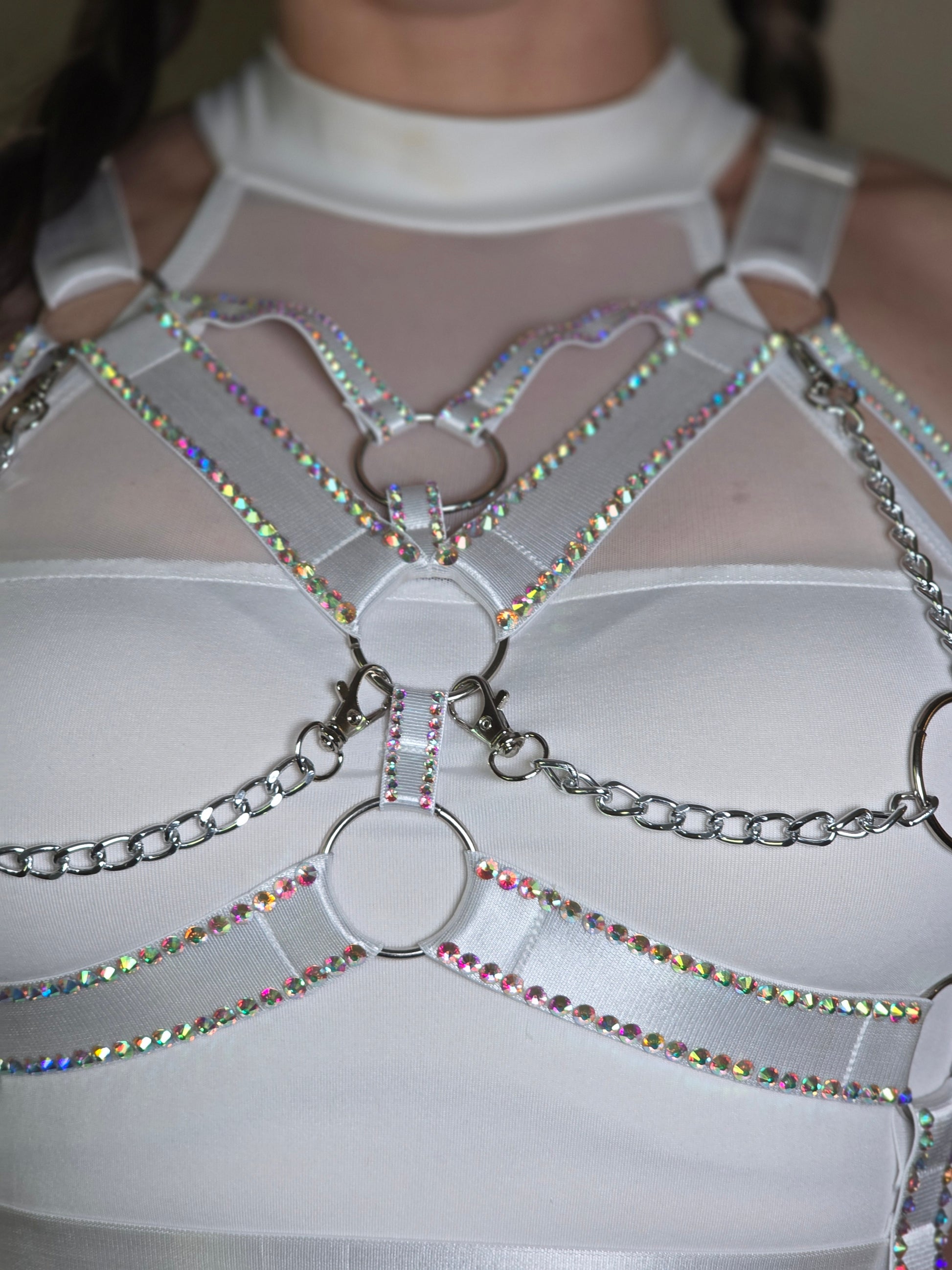 Switch between edgy and elegant with our new clip-on bust chains. Designed for easy styling and a better fit across more bust sizes, they let you customize your harness look in seconds.